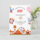 Venez célébrer ! 🎉 Célébrez la journée spéciale de votre enfant avec cette invitation d'anniversaire au cirque. Avec des chapiteaux ludiques, des ballons et des détails festifs, ce design est parfait pour une fête sur le thème du carnaval. Personnalisez facilement avec les détails de votre fête et créez des souvenirs inoubliables.
