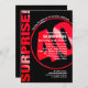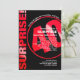Cette invitation à l'anniversaire brillante et amusante fera connaître à vos invités la partie la plus importante, c'est une surprise! Rouge vif sur noir avec un géant 40 avec votre libellé personnalisé pour un invitation d'anniversaire surprenant gagnant. Le dos leur rappelle de briller !