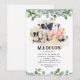 Apportez une touche de la campagne au jour spécial de votre petit avec nos adorables invitations d'anniversaire de ferme pour enfants ! Avec une combinaison élégante de fond blanc pur associé à un feuillage d'eucalyptus élégant et des animaux de ferme en aquarelle adorables tels que des vaches, des cochons, des moutons, des chiens, des poules, des lapins, des canards et des coqs. Le design est non seulement charmant, mais hautement personnalisable, ce qui en fait le choix idéal pour préserver les souvenirs d'enfance.