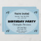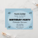 Bleu avec de grands nombres noirs donne un look moderne. Ajoutez l'âge ou laissez-le vide - Retour dit Come Party mais peut être changé pour dire ce que vous aimez. Complétez avec les informations RSVP.