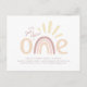 Cette carte d'invitation d'anniversaire de 1ère année avec un arc-en-ciel boho et un soleil est parfaite pour une fête d'anniversaire de printemps ou d'été. L'arc-en-ciel monochrome simple et les rayons de soleil sont délicats et doux pour votre petit. Personnalisez simplement avec les informations de votre fête pour une invitation d'anniversaire adorable et estivale !