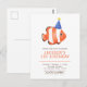 Cette invitation d'anniversaire pour enfants présente un joli poisson clown orange et blanc dans un style graphique aquarelle et une typographie simple. Neutre en termes de sexe, cette belle invitation est idéale pour les garçons et les filles. Facile à personnaliser pour TOUT ÂGE avec tous vos détails de fête !