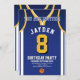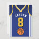 Célébrez votre journée spéciale avec cette Invitation anniversaire de Basketball Jersey, conçue pour les vrais fans de basket ! Doté d'un design jersey audacieux inspiré des couleurs emblématiques violet et or, cet invitation est parfait pour les enfants, les ados et les adultes qui aiment le jeu. Personnalisez-le facilement avec votre nom, âge, détails de la fête et même le numéro d'équipe en quelques clics seulement. Disponible en plusieurs tailles, imprimé sur papier de qualité supérieure avec une large gamme de finitions pour correspondre à votre style. Choisissez parmi différents types de papier, l'impression rapide et l'expédition rapide afin que vos invitations arrivent à temps. Que ce soit pour une fête sportive ou une fête de fans de Lakers, cet invitation est le moyen idéal pour exciter vos invités.
