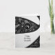 Cette invitation de carte d'anniversaire de basketball mignonne présente l'image réaliste d'un basketball stylisé abstraitement surdimensionné qui a des panneaux alternés noirs et blancs recolorés sur le devant de la carte - un motif doodle de paisleys, de fleurs et de plumes en blanc couvre les panneaux noirs du basketball - personnalisez avec votre propre message d'anniversaire - par katz_d_zynes