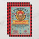 Parfait pour le mec viril ! Invitation de fête de bûcheron avec un grand bûcheron barbu, des haches, du bois coupé sur un fond à carreaux. Parfait pour un anniversaire, une retraite, un enterrement de vie de garçon, un événement marquant ou toute fête macho. Illustration dessinée à la main par McBooboo. Veuillez me contacter à tkatz@me.com en cas de problème