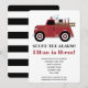 Invitation de fête d'anniversaire de camion de pompiers vintage avec dalmatien - Célébrez un anniversaire spécial avec cette invitation de camion de pompiers vintage. L'invitation présente une illustration d'un camion de pompiers vintage avec un doux dalmatien et un dos à rayures de rugby noir et blanc. Les articles assortis sont disponibles chez Noteworthy Printables.