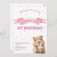 Célébrez le grand moment de votre petite fille avec cette adorable invitation de 1er anniversaire capybara rose. Les étoiles aquarelles douces, la banderole à ruban et l'illustration de gâteau créent un design charmant et féminin, parfait pour une célébration magique de premier anniversaire. Personnalisez tout le texte pour qu'il corresponde aux détails de votre fête.