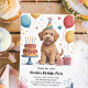 Célébrez la journée spéciale de votre enfant avec cette adorable invitation d'anniversaire sur le thème des chiens ! Avec un chiot mignon tenant des ballons, des chapeaux de fête et un gâteau d'anniversaire, cette carte personnalisable est parfaite pour les fêtes d'anniversaire sur le thème des animaux de compagnie. Personnalisez-la avec le nom de votre enfant, les détails de la fête et les informations de RSVP pour une invitation unique qui donne le ton à une célébration amusante et festive. Parfaite pour les garçons et les filles, cette invitation d'anniversaire de chiot rend la planification de la fête facile et inoubliable !
