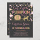 Invitation d'anniversaire de princesse citrouille. L'effet pailleté dans ce design est une image numérique faite pour ressembler à de vraies paillettes. De haute qualité et toujours magnifique, mais aucune véritable paillette ne sera utilisée dans la fabrication de ce produit. Tous les designs sont © PIXEL PERFECTION PARTY LTD