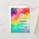 Carton d'invitation d'anniversaire avec un fond aquarelle présentant les couleurs de l'arc-en-ciel.