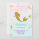 Invitation d'anniversaire de fille de sirène, or.