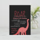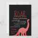 Invitation d'anniversaire tendance, féminine et simple pour fille noire, avec silhouette de dinosaure rose mignonne et typographie moderne. ROAR!