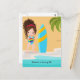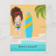 Invitation d'anniversaire de fille pour une fête d'été à la plage avec une jolie petite fille aux cheveux bruns customisable selon vos préférences.