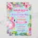 Plongez dans le plaisir avec notre invitation à la fête d'anniversaire de piscine girly! Idéal pour un épique bain d'anniversaire d'été, cette invitation vibrante éclate d'excitation dans des couleurs vives. Le design présente un adorable flamant rose entouré de fleurs tropicales luxuriantes. L'image vivante capte l'essence d'une journée ensoleillée et remplie de joie. Personnalisez l'invitation avec les détails de votre fête pour en faire la vôtre. Imprimé sur des cartons de haute qualité, avec enveloppes pour un envoi facile. Faites un peu de plaisir avec notre invitation à la fête d'anniversaire de piscine tropicale et donnez le ton pour une journée d'anniversaire inoubliable remplie de plaisir et de rire. Commandez maintenant et laissez la célébration commencer !
