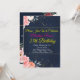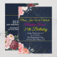 Célébrez dans le style avec une invitation à l'anniversaire bleu marine floral avec des pivoines aquarelles et ranunculus dans des coins mous, accentués de fines pointes d'or. Parfait pour les anniversaires jalons ou les fêtes de jardin en soirée.