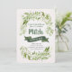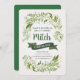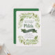 Belle invitation d'anniversaire d'inspiration nature avec un cadre composé d'essences de fougères, de pins et de verts boisés. Les délicats motifs peints à la main entourent votre texte annonçant votre journée spéciale. Dans de belles nuances de vert boisé, gris et marron. Bandes diagonales vertes au verso.