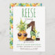 Préparez-vous à faire la fête avec nos ananas tropicaux portant des lunettes de soleil première invitation anniversaire! Parfait pour une fête divertissante et animée, cette invitation présente un design cool d'ananas qui ravira vos invités. Customisez facilement tous les détails en ligne pour le rendre unique à vous. Imprimée sur papier de haute qualité, cette invitation donnera le ton pour un bain mémorable et ensoleillé de premier anniversaire. Commandez maintenant pour créer un souvenir festif et amusant!