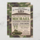 Appelle toutes les troupes ! Invitation tout le monde à participer à votre fête d'anniversaire d'opération spéciale avec un camo modèles d'invitation de l'armée. Les invitations à l'anniversaire de l'armée de camo sont assorties de greens militaires et de couleurs de camouflage marron avec des troupes et un char sur un design d'invitation de style moderne.