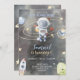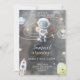 Carte d'invitation d'anniversaire pour les enfants conçus avec un astronaute dans l'espace extra-atmosphérique.