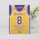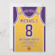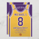 Célébrez votre journée spéciale avec cette Invitation anniversaire de Basketball Jersey, conçue pour les vrais fans de basket ! Doté d'un design jersey audacieux inspiré des couleurs emblématiques violet et or, cet invitation est parfait pour les enfants, les ados et les adultes qui aiment le jeu. Personnalisez-le facilement avec votre nom, âge, détails de la fête et même le numéro d'équipe en quelques clics seulement. Disponible en plusieurs tailles, imprimé sur papier de qualité supérieure avec une large gamme de finitions pour correspondre à votre style. Choisissez parmi différents types de papier, l'impression rapide et l'expédition rapide afin que vos invitations arrivent à temps. Que ce soit pour une fête sportive ou une fête de fans de Lakers, cet invitation est le moyen idéal pour exciter vos invités.