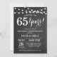 Invitation d'anniversaire de mariage 65 ans. Fond de tableau noir. Lumières guinguettes. Noir et blanc. 1re, 2e, 3e, 4e, 5e, 10e, 15e, 20e, 25e, 30e, 35e, 40e, 45e, 50e, 55e, 60e, 65e, 70e, 75e, 80e, Toutes années. Anniversaire adulte. Fête d'anniversaire pour homme ou femme. Pour une personnalisation supplémentaire, veuillez cliquer sur le bouton "Personnaliser" et utiliser notre outil de conception pour modifier ce modèle.