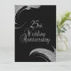 Cartes d'invitation uniques pour un anniversaire de mariage noir pour une réception / fête de 25 ans de mariage. Avant et arrière noir avec texte argenté au dos donnant un aspect élégant à cette invitation d'anniversaire de mariage gratuite.