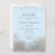 Une élégante invitation de fête d'anniversaire de mariage bleu et argent avec de la poussière de confetti argentée en haut et du glamour argenté en bas.