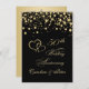 Invitation d'anniversaire de mariage de 50 ans avec coeurs joints dorés et confettis ronds sur fond noir