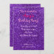 Modèle d'invitation d'anniversaire avec fausse parties scintillant violet arrière - plan très brillant, brillant et girly avec police rose