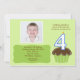 Invitation de petit gâteau de Cutie en vert avec un "4" bleu dans un petit gâteau de chocolat. Ajoutez une photo et customisez pour votre jour parfait !