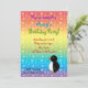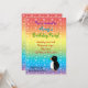 Invitation d'anniversaire avec l'arrière - plan de coeur de pingouin et d'arc-en-ciel