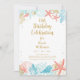 Belle invitation à la fête d'anniversaire sur le thème de la plage avec corail, étoiles de mer et coquillages. Personnalisez-vous pour n'importe quel âge ou jalon comme un 15ème, 16ème, 21ème, 30ème, 40ème, 50ème, 60ème ou 70ème anniversaire ! Couleurs rose corail, turquoise et or.