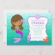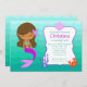 Commencez votre fête d'anniversaire de fille outre de la droite avec notre invitation mignonne d'anniversaire de sirène comportant la petite sirène d'afro-américain la plus mignonne nageant sous l'eau avec un petit crabe mignon. La coordination de retour avec une sirène et des coquilles de mer est la touche finale parfaite aux invitations de cette partie d'anniversaire de enfant. Invitation parfaite pour la partie du bain de votre petite sirène mignonne. Personnalisez juste avec votre information et vous êtes tous placez pour aller ! Articles assortis comprenant des timbres-poste d'anniversaire, autocollants de faveur, merci vous carde et remercie que les autocollants sont également disponibles dans notre magasin. ©Corazón Dulce