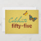 La cinquante-cinquième invitation d'anniversaire de style moderne comporte un talon haut conçu entièrement hors des papillons, plusieurs autres papillons, papier de toile de regard sur l'avant et le dos, et des secteurs que vous pouvez facilement customiser avec les destinataires nom d'anniversaire, âge, et des détails de fête d'anniversaire pour la cinquante-cinquième fête d'anniversaire spéciale !