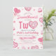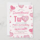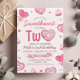 Notre invitation d'anniversaire deux douceurs est la façon parfaite d'inviter amis et famille à votre fête. Le design présente un thème de bonbons, avec suffisamment d'espace pour tous les détails importants tels que la date, l'heure et le lieu de la fête. Parfait pour tout âge, sexe et thème de la fête, il est sûr d'impressionner vos invités et de les faire se réjouir de la célébration.