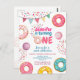 Cette invitation d'anniversaire sucrée présente mes donuts dessinés à la main dans des couleurs vives avec des confettis.