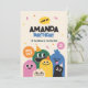 Célébrez avec style grâce à cette invitation d'anniversaire amusante et colorée avec un doodle mignon ! Avec des personnages de dessins animés ludiques portant des chapeaux de fête, des couleurs vives et une typographie en gras, cette invitation donne le ton à la célébration d'anniversaire de votre enfant.