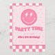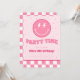 Invitation amusante rose Prépa Visage Heureux ! Un thème tendance rétro amusant, avec des nuances roses, un éclair, des étoiles et un motif à carreaux.
