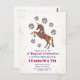 Envoyez cette Carte Postale d'Invitation Personnalisée d'Anniversaire Fleurs de Célébration de Licorne Magique avec la licorne colorée magique debout parmi les belles fleurs à toutes les personnes que vous invitez à votre fête d'anniversaire. Elle a un aspect métallique numérique. Personnalisez-la.