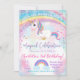 Cartons d'invitation d'anniversaire de licorne magique arc-en-ciel