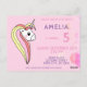 Invitation d'anniversaire licorne rose pour enfant