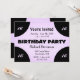 Centre Lilac sur l'invitation de fête d'anniversaire noir. Lilac et noir lui donne un look moderne. Ajouter l'âge ou laisser vide - Compléter avec RSVP
