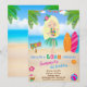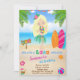 Invitation d'anniversaire Luau invitation hawaïenne pour fille. Jolie invitation style hawaïen pour l'anniversaire de la fille avec fille blonde, surfs, plage et bleu océan, et quelques équipements de fête tropicale. Modifiez simplement ce modèle facile à utiliser dans le menu Personnaliser.
