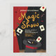Cette invitation à l'anniversaire de spectacle magique est idéale pour la fête d'anniversaire de votre enfant! La carte comporte un chapeau de dessus magicien avec une baguette magique et des cartes à jouer volant dans l'air. La carte comporte également des rideaux de scène sur le côté, afin que le nom et les détails de votre enfant puissent être imprimés à l’intérieur. Le design peut être customisé facilement avec vos propres informations Ce design magique sur mesure amusant sera parfait pour la fête d'anniversaire de votre petit magicien.
