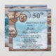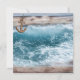 Une invitation de fête d'anniversaire sur le thème nautique avec des vagues océaniques encadrées par du bois rustique vieilli, une ancre et un nœud noué en forme de cœur.