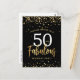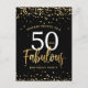 Carte postale d'invitation d'anniversaire élégante et moderne cinquante et fabuleuse. Le design présente une calligraphie 50 et fabuleux sur fond noir et des confettis dorés.