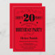Invitation 20e anniversaire Typographie Noire et Rouge. Arrière - plan noir et rouge. Anniversaire adulte. Hommes ou femmes, anniversaire. Enfants Garçon ou fille Ado Anniversaire adolescente Invitation . 13e 15e 16e 18e 20e 21e 30e 40e 50e 60e 70e 80e 90e 100e. N'Importe Quel Âge.