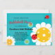 Carte postale turquoise Joyeux Anniversaire pour joueur de Pickleball avec des coccinelles Pickleball mignonnes. Carte RSVP au dos