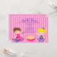 Commencez votre fête avec cet invitation brillant. C'est génial pour une soirée de coureur ! Il dispose d'un arrière - plan rayé rose vif. Il y a deux adorables filles assises. Une mignonne fille en pyjama rose vif tenant une brosse à cheveux est assise dans le coin inférieur gauche de l'invitation de l'autre côté d'elle est une autre mignonne fille en PJ violet. Au milieu d'eux se trouve un bol de pop-corn. Découvrez les nombreux autres motifs et couleurs de cette ligne ainsi que les notes de remerciement, les étiquettes, les chemises et plus encore.© Illustrations JW