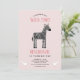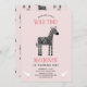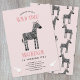 Un joli zèbre et quelques oiseaux ornent cette invitation d'anniversaire de safari rose pâle pour la première année. Le dos présente un motif de zèbre assorti.